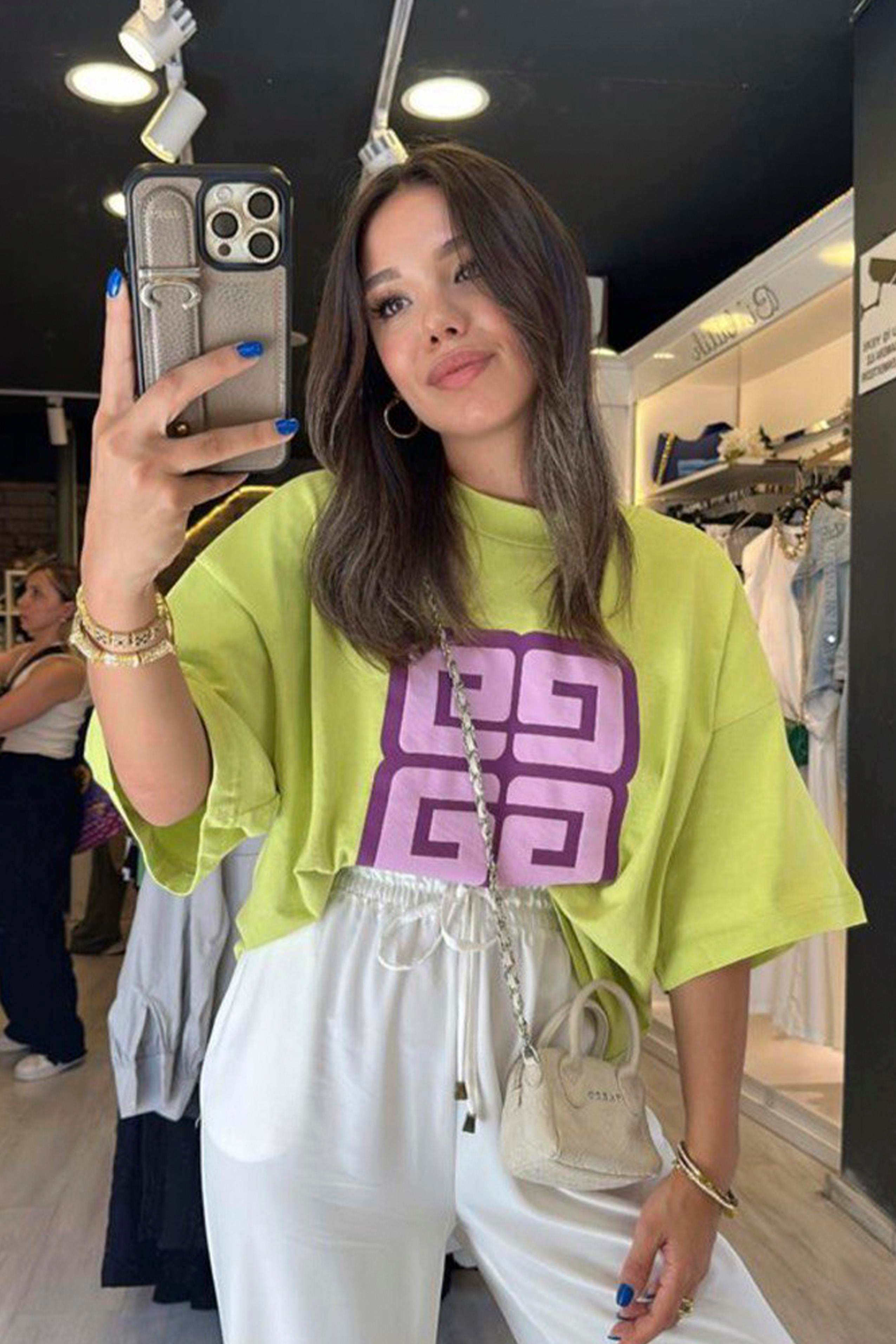 0022 ÖN BASKILI OVERSIZE TİŞÖRT AÇIK YEŞİL (0022)