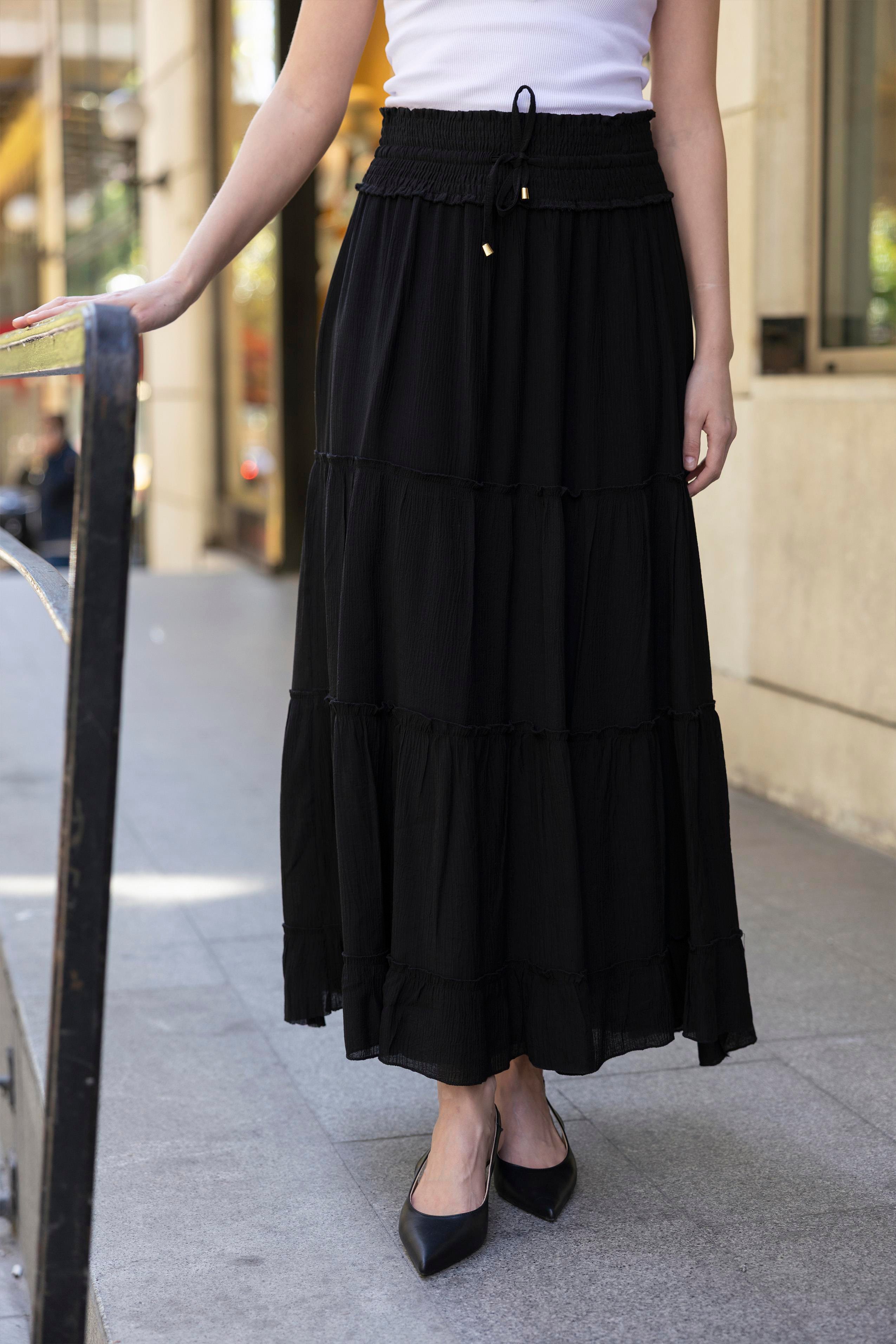 3295 GİPE KEMERLİ PARÇALI ETEK SİYAH
