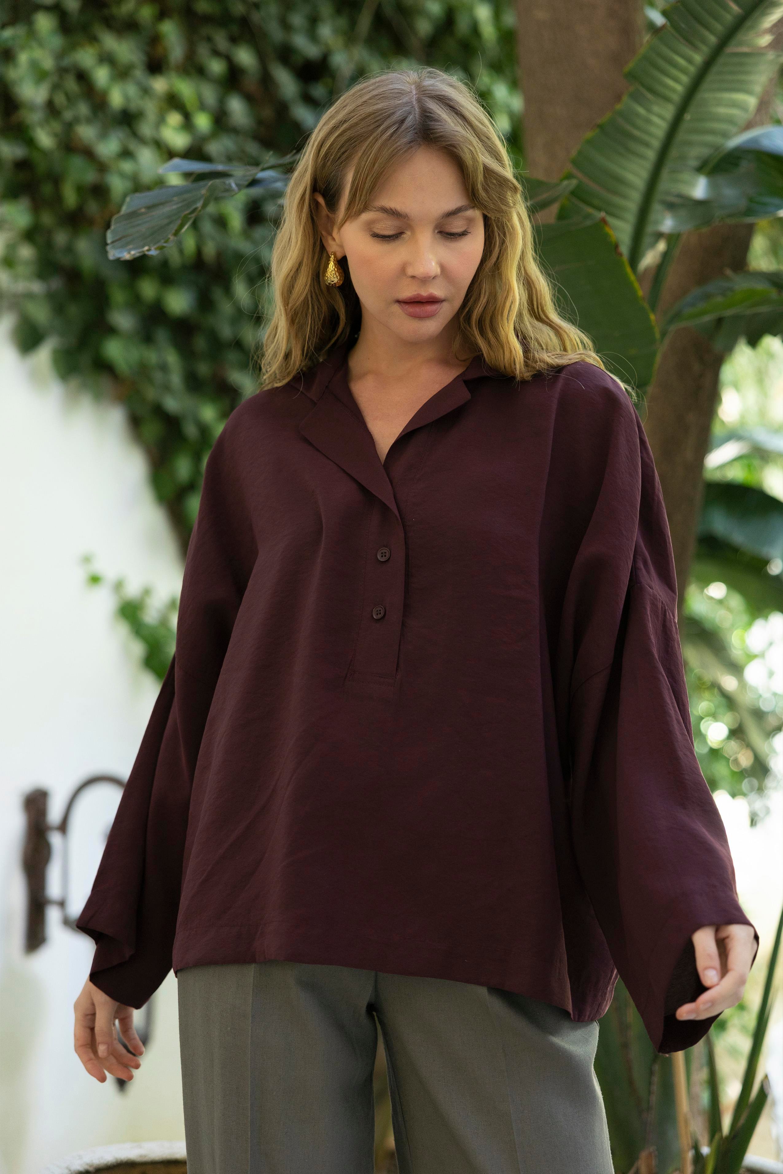 4953 POLO YAKA BLUZ MÜRDÜM