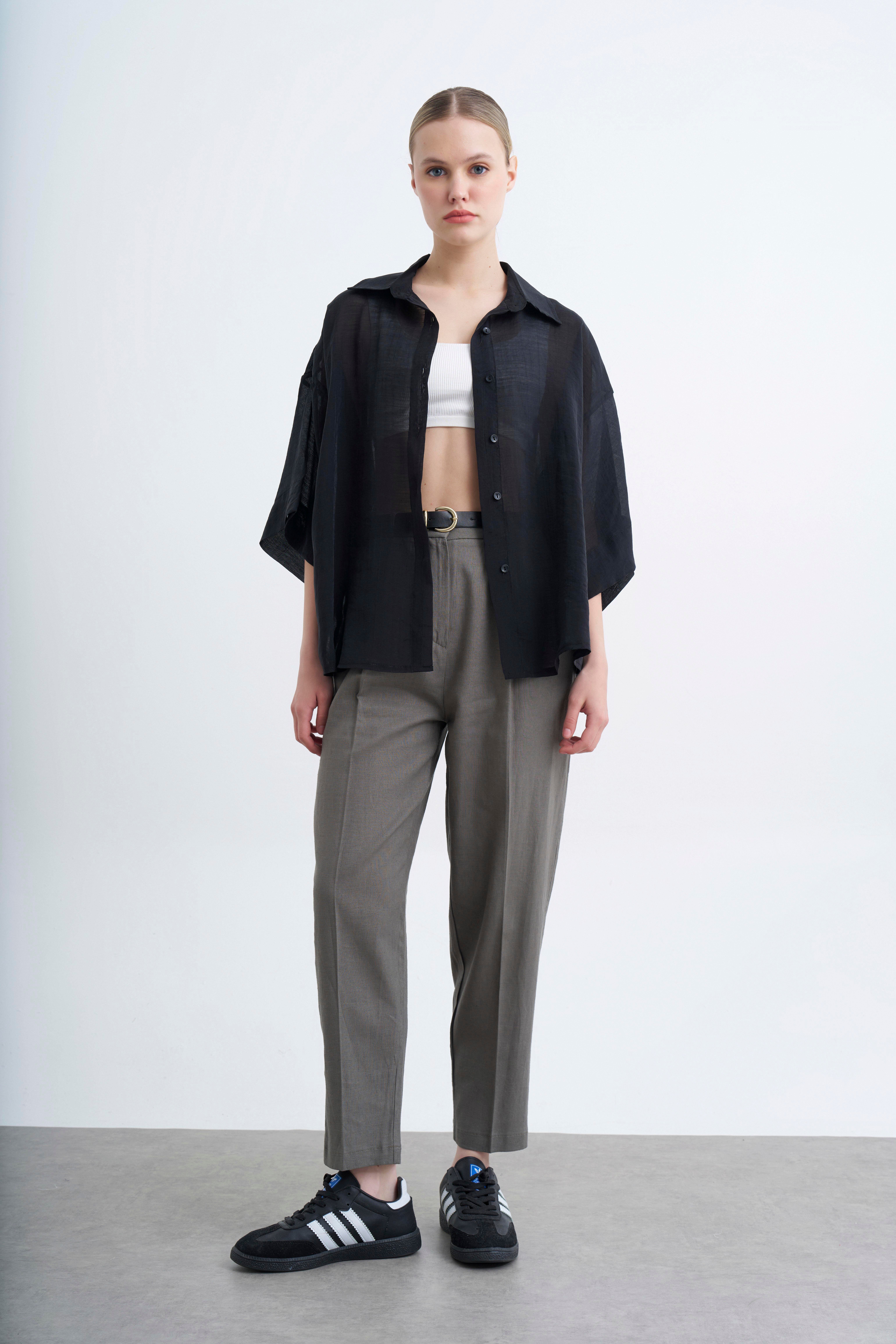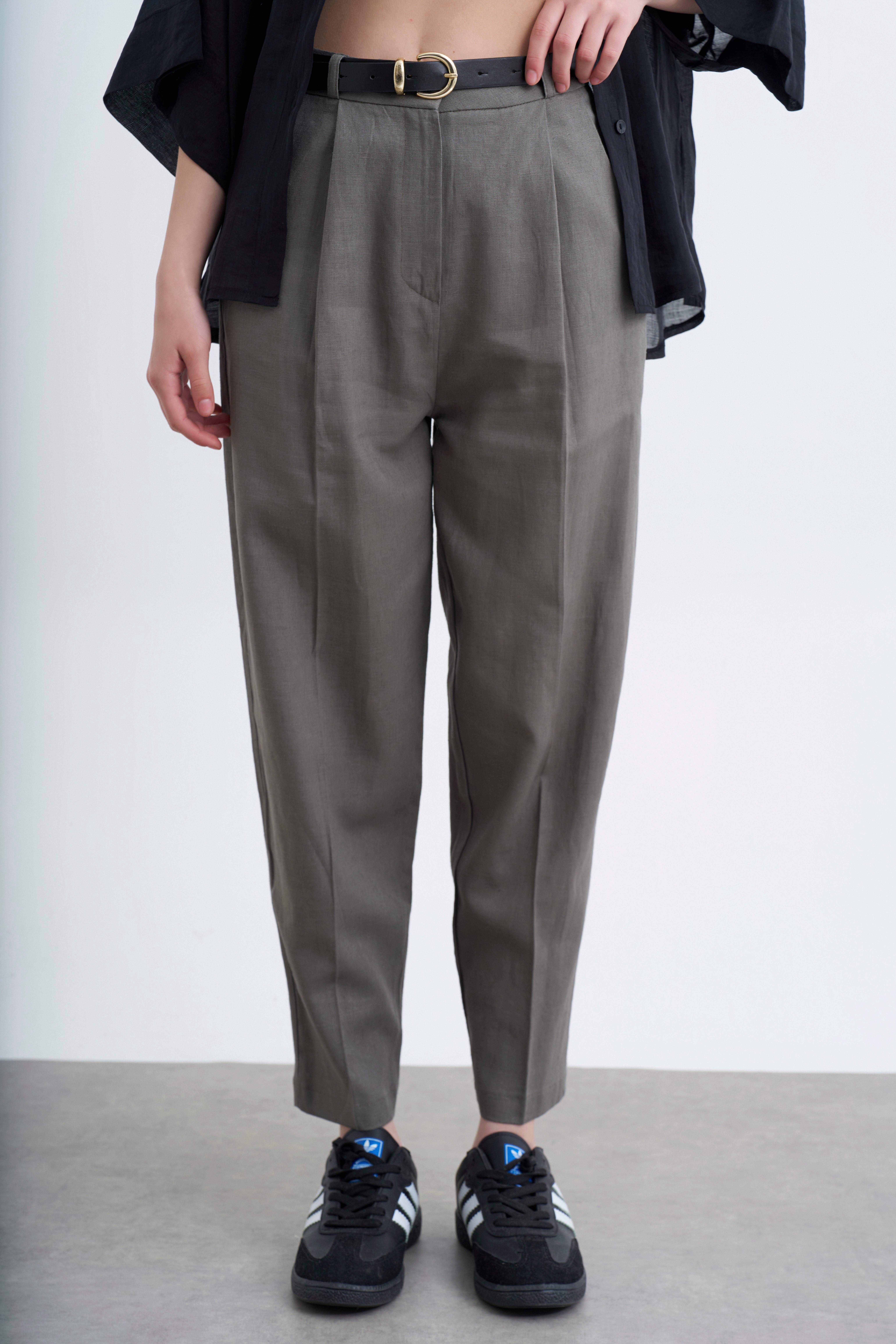 50985 KEMERLİ KETEN PANTOLON HAKİ