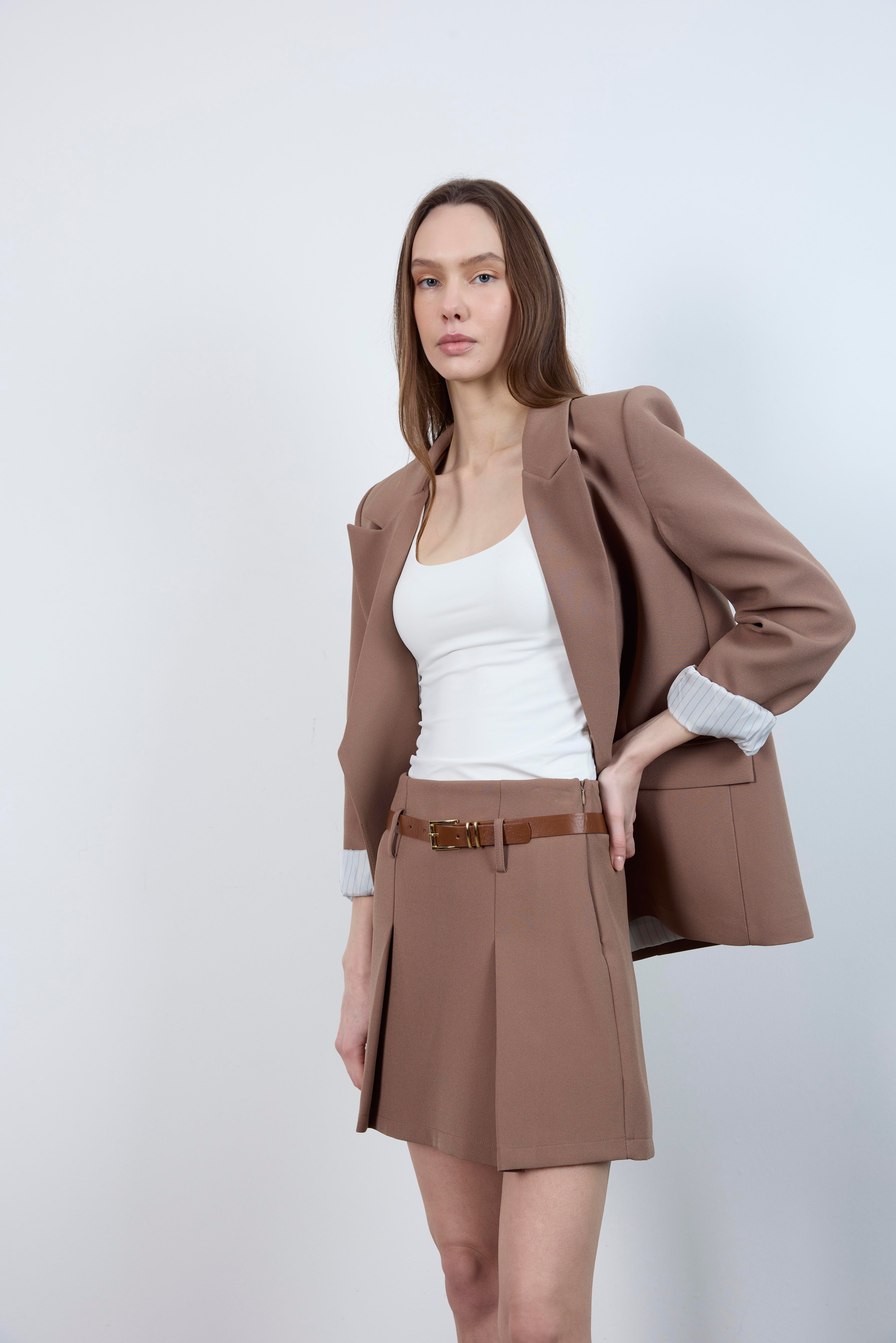 51065 ATLAS KEMERLİ ŞORT ETEK AÇIK KAHVE