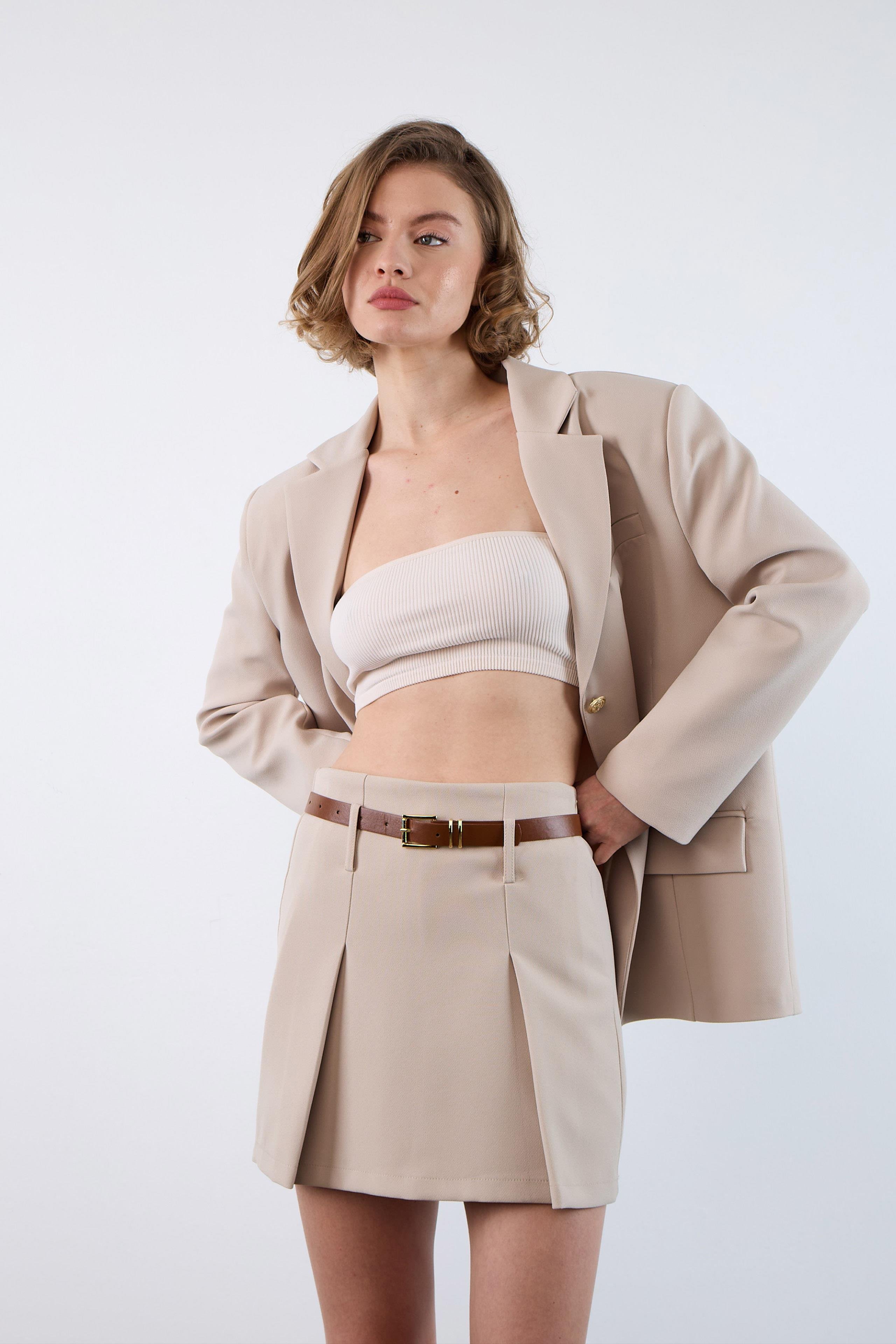 51065 ATLAS KEMERLİ ŞORT ETEK TAŞ