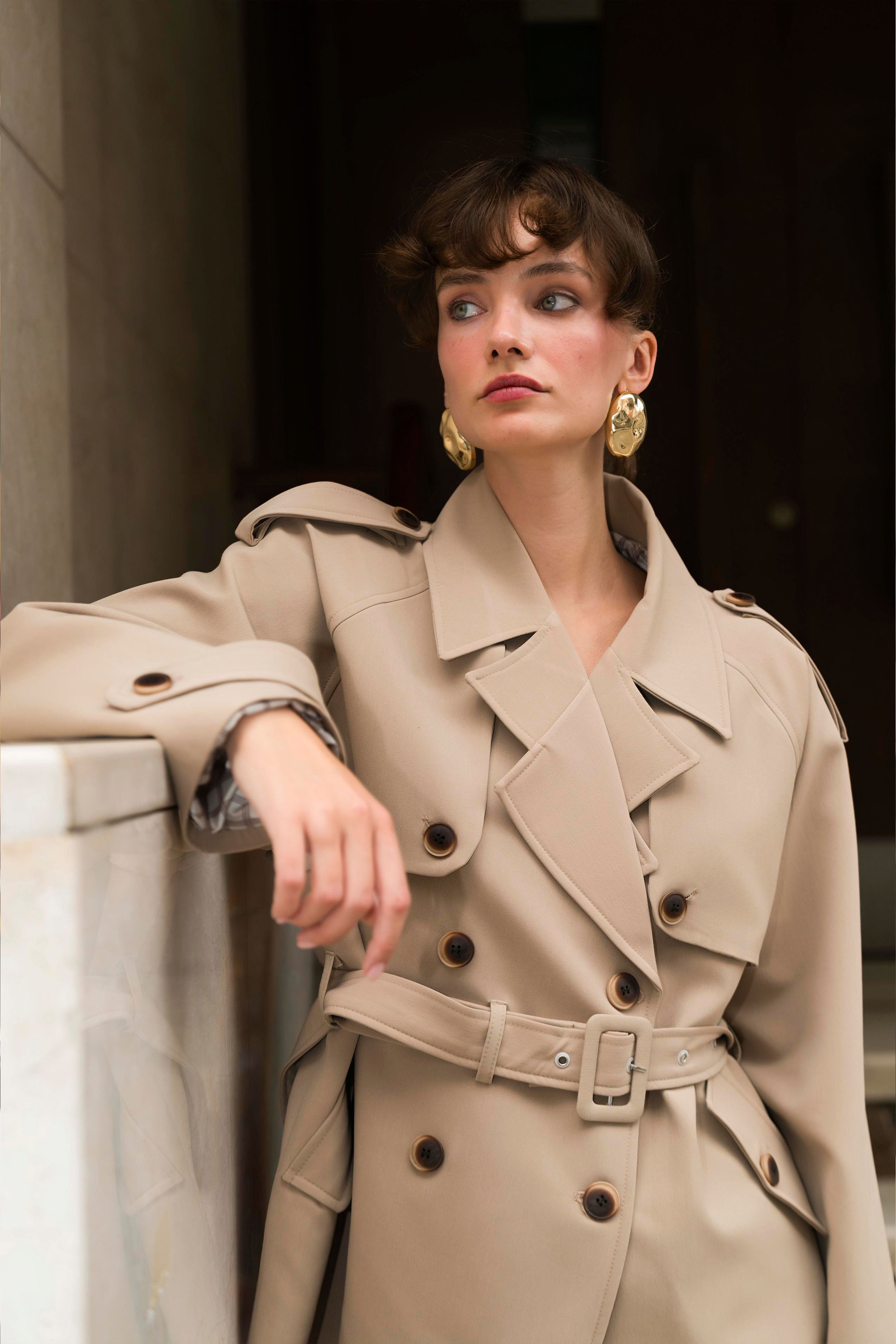 9587 ARA YAKALI TRENÇ CAMEL