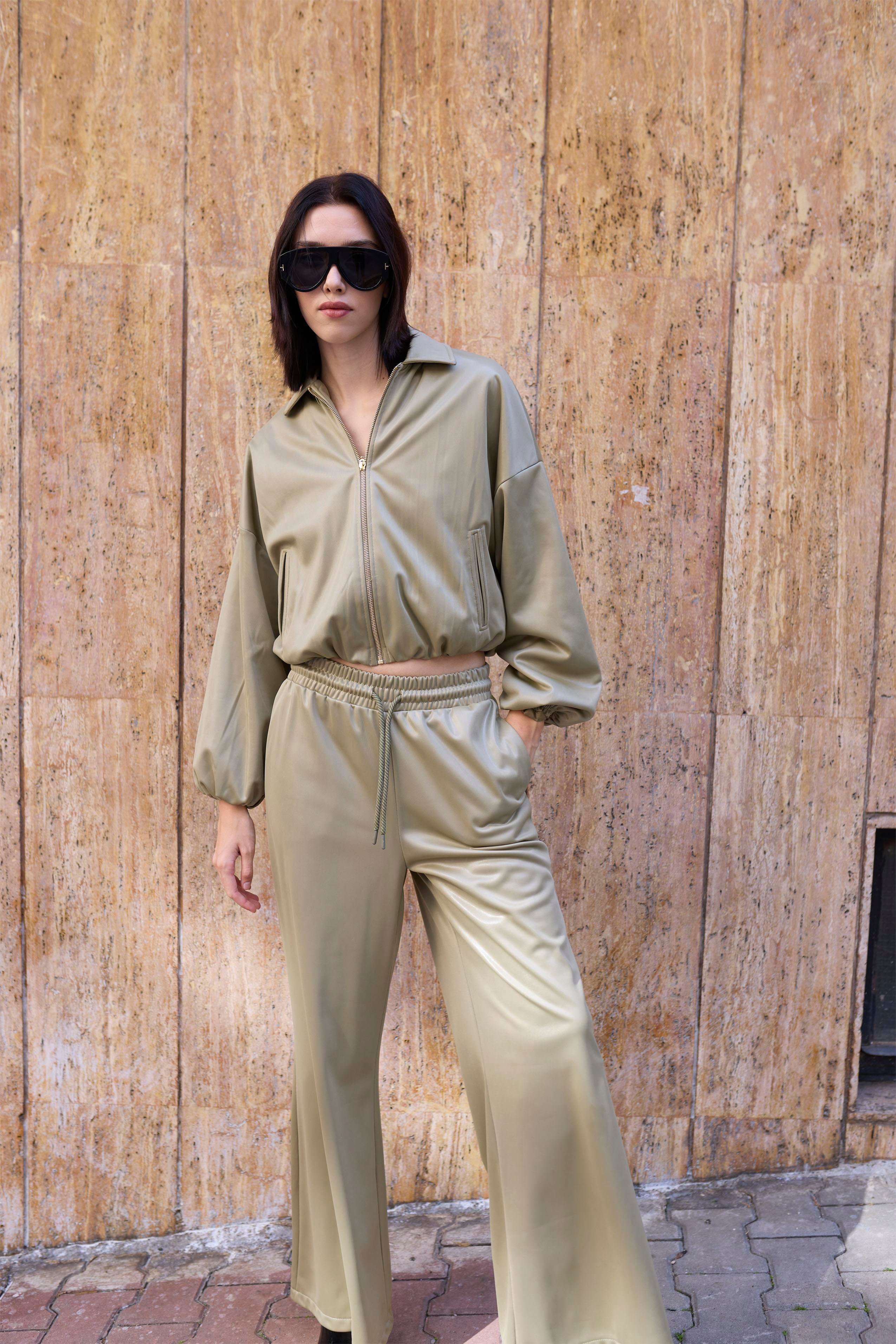 51231 DERİ CEKET PANTOLON TAKIM OLİVE (51231)