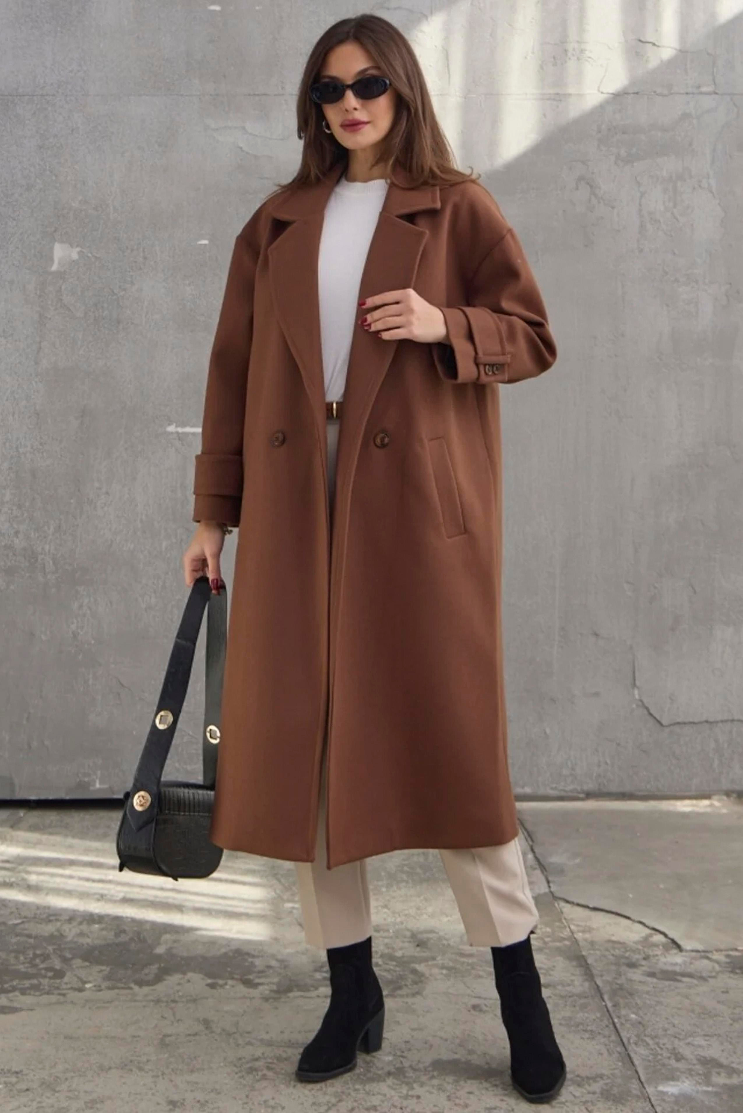 9205 OVERSIZE KRUVAZE KABAN KAHVE