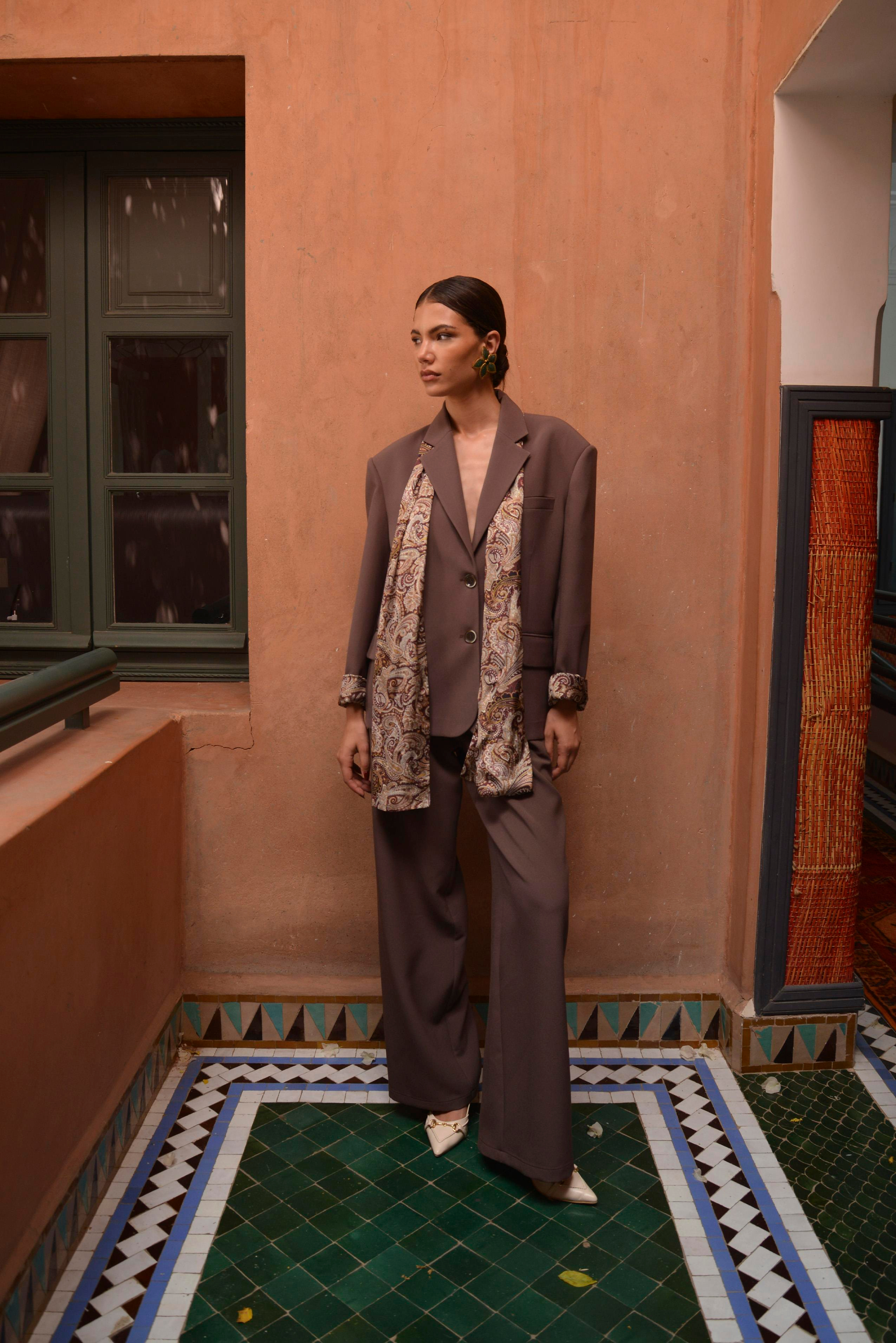 9607 SATEN ASTARLI CEKET TAKIM KAHVE